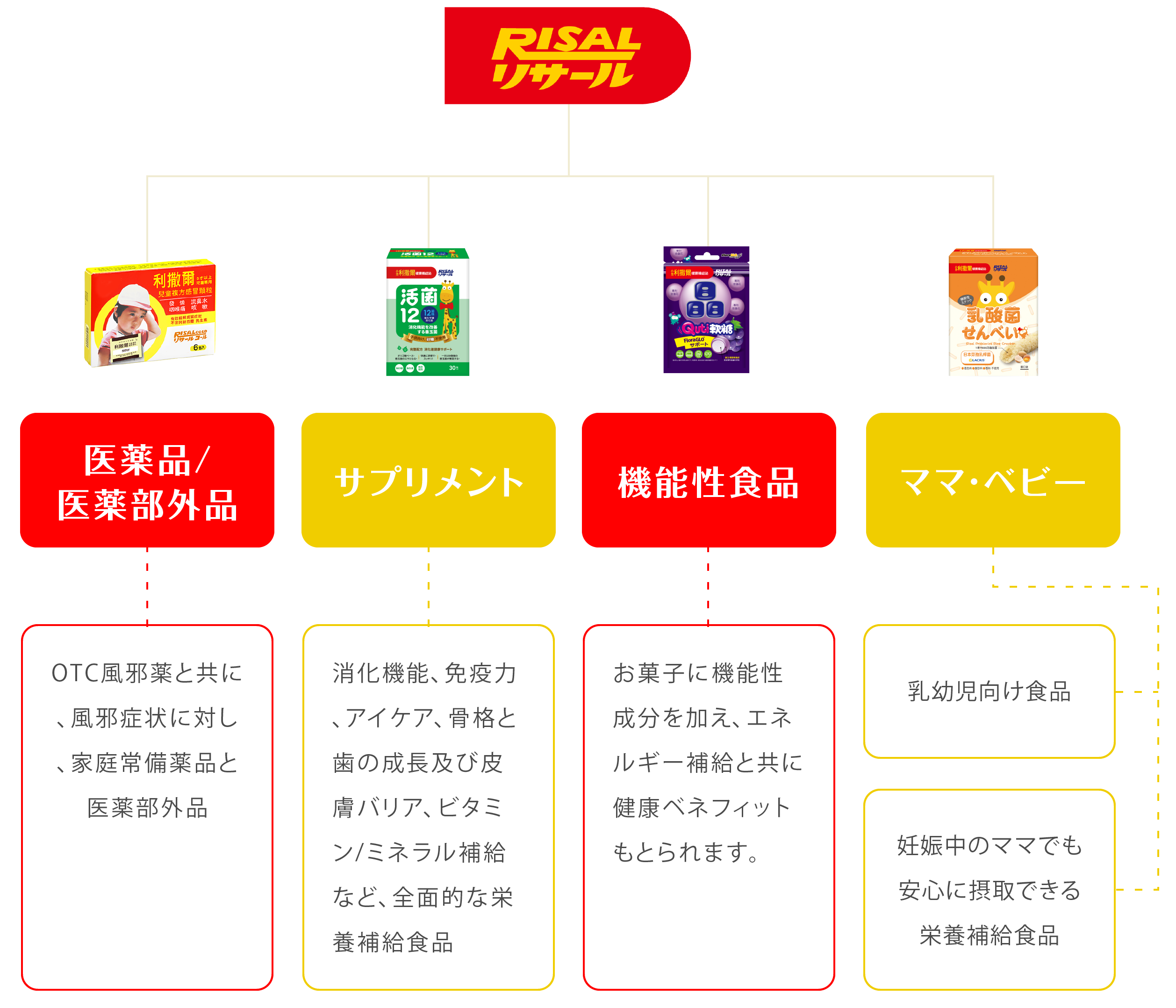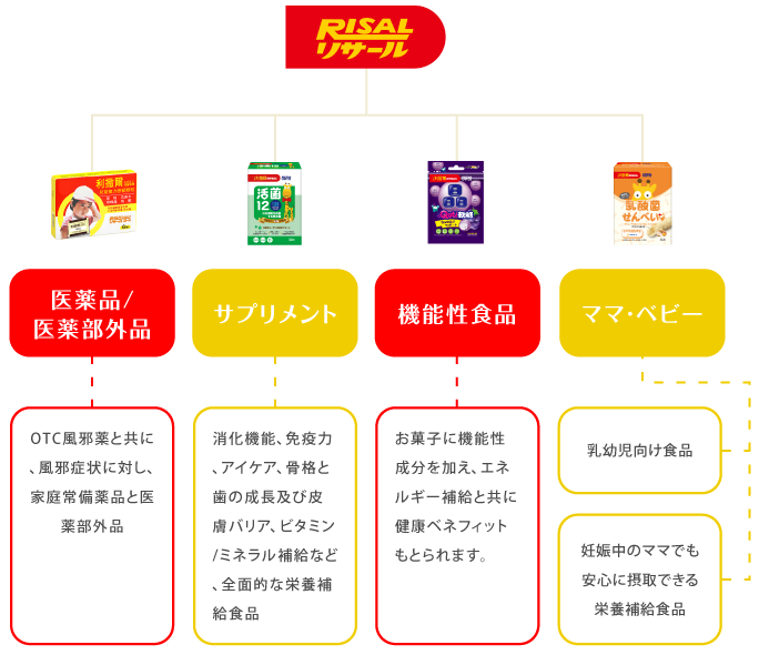 2011年からリサールは健康栄養補給シリーズが発売したことにより、1才の乳幼児から12才ごろの子供向けの健康食品や栄養補給食品及び機能性食品と妊娠中のママに適切な栄養補給食品を開発してきました。全ての商品は保存剤、人工着色料無添加であり、機能性成分の含有量と商品の安全性を第三者機関で認証され、品質へのこだわりも譲りません。”ママ安心だね”はブランドの承諾として貫き通します。