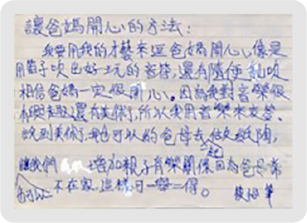 “親と子供の間、愛を込めて”は子供に手書や描絵で親への愛を伝えることを推しすすめることにより、