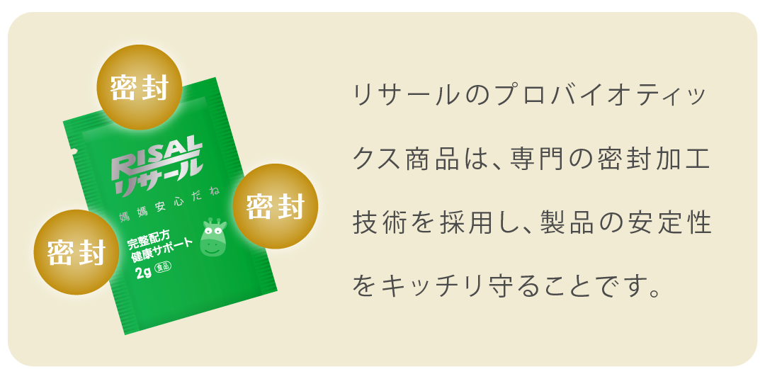 *プロバイオティックス製品はこだわった顆粒粉末剤型で、安定で活性を守りつつ、口で固まらないことも!