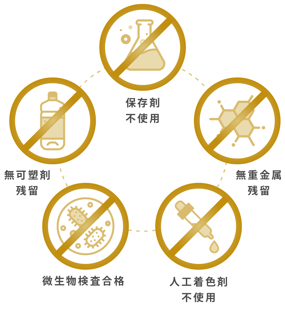 リサールの商品は国際認証された第三者機構で品質の最終検査を行うことです。微生物や可朔剤と重金属の残留確認はもちろん、全ての商品に保存剤と人工着色剤が含まらず、余分な人工添加物も使用しないことです。